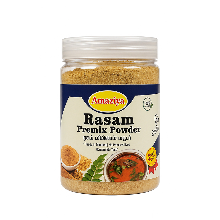 Crafted using a perfectly balanced blend of roasted spices, herbs, tamarind, and aromatic ingredients, this premix delivers that tangy, spicy, and soulful taste rasam lovers crave. Whether you’re short on time or away from home, this instant mix helps you prepare a delicious bowl of rasam within minutes – no grinding or seasoning required!